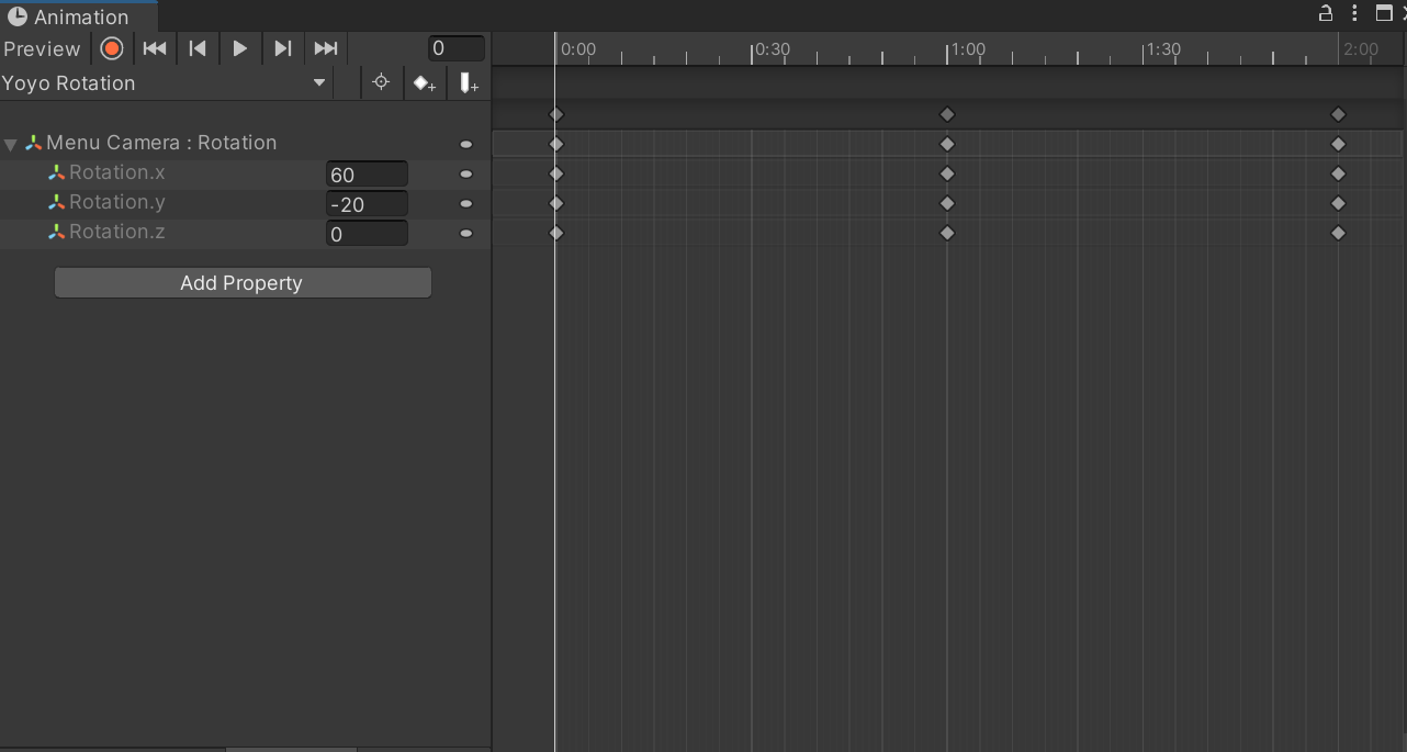 - 애니메이션에 Rotation Property를 둡니다