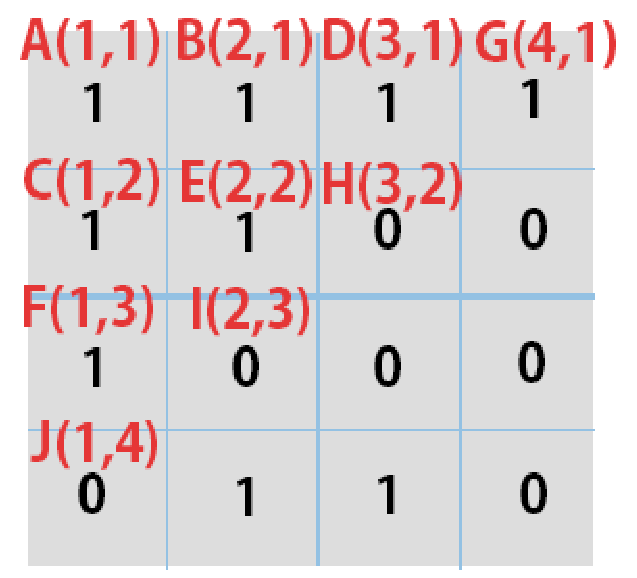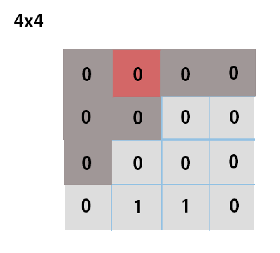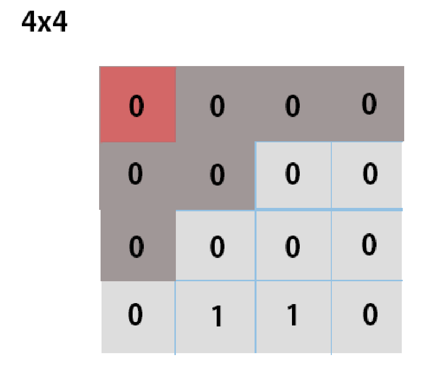 (1,1) 부터 (2,1) (3,1) ... (4,4) 까지 차례대로 검사할 예정이죠.