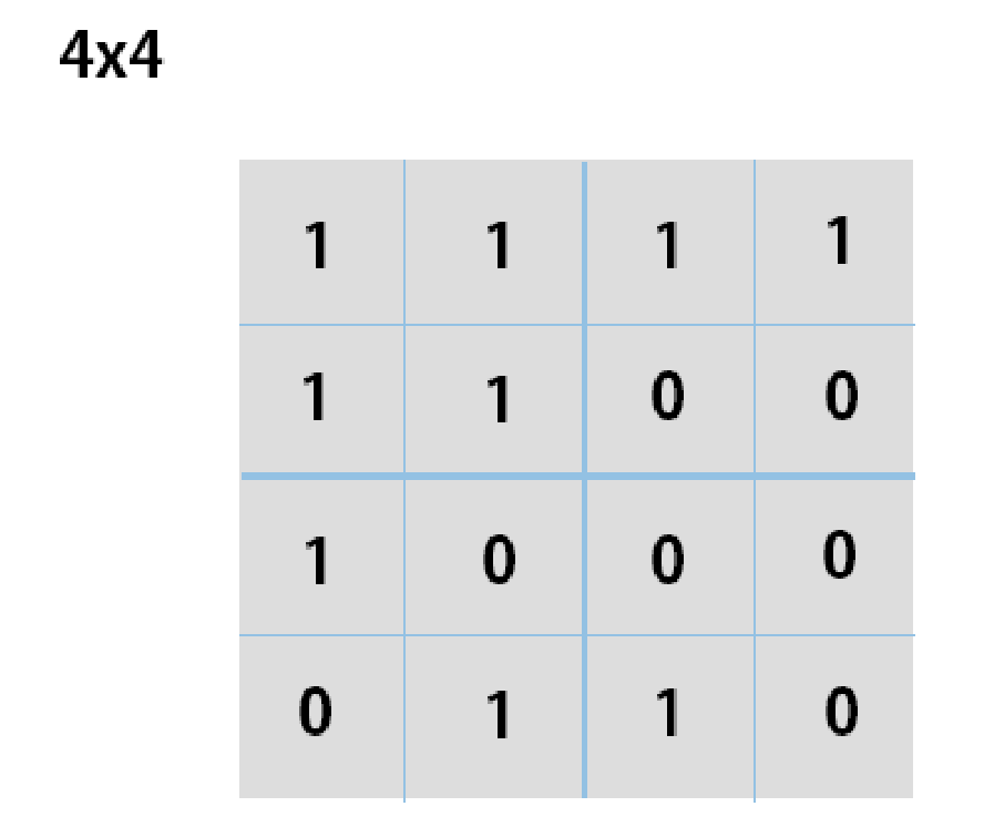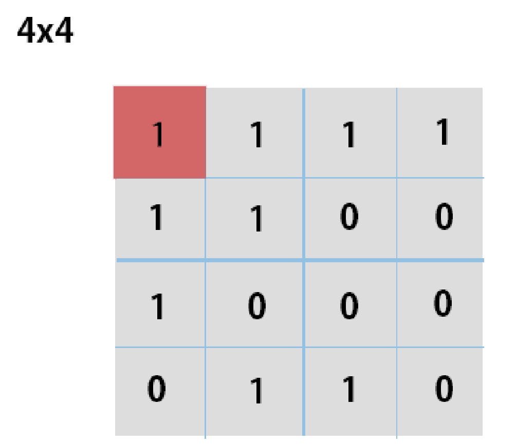 N = 4인 지도가 아래 그림처럼 있습니다. (1은 집, 0은 비어있는 곳)