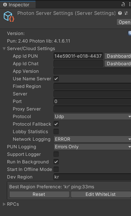 🎮 Game Dev (게임개발)/PC (데스크탑, 노트북, 터치패널) [2D 멀티게임] 01. 환경 설정 - 🔔 유튜브 크리에이터 고라니TV님의 유니티강의 2D 횡스크롤 멀티게임 만들기 를 보고 공부하여 작성한 게시글입니다! 🔔 이번에는 Photon을 이용한 멀티게임을 만들어 보아서 새로운 멀티게임을 만들어 색다른 멀티게임을 만들어 볼 수 있는 기반을 다지는 중요한 작업을 할 것 입니다. 여기서는 게임 구축에 대한 전반적인 내용보단 멀티게임을 위한 포톤 사용법에 대해서만 중점적으로 다루고자 합니다. 🧷 1. 포톤(Photon) 구축하기 - 포톤 가입 Photon 홈페이지 위의 링크를 들어가서, Photon에 가입하고 로그인을 합니다. - 포톤 서버 생성 새 어플리케이션 만들기를 클릭합니다. Photon 종류는 PUN으로 두고, 원하는 이름을 기입 후 작성하기를 클릭합니다. 어플리케이션 ID가 생성된 것을 알 수 있습니다. 이를 잘 기억해둡니다. 🧷 2. 포톤 에셋 설정 - 포톤 에셋 Import 포톤 에셋 PUN 2 - FREE | 네트워크 | Unity Asset Store Get the PUN 2 - FREE package from Exit Games and speed up your game development process. Find this & other 네트워크 options on the Unity Asset Store. assetstore.unity.com 에셋을 링크를 타고, 내 에셋에 추가하기를 클릭 후, 새로운 Untiy 프로젝트에 Import 해줍니다. - 포톤 네트워크 Id 기입 Photon/PhtonUnityNetworking/Resource/ 경로의 PhotonServerSettigs를 클릭해줍니다. 자기 서버의 네트워크 ID를 기입해줍니다. 🧷 3. 슈팅 게임 에셋 불러오기 아래의 고라니TV님의 유튜브 채널의 설명란에, 필요한 리소스 파일이 있습니다. 가서 확인해보시고 다운 받으시면 되겠습니다. IcePhysics 파일을 제외한, 소스들이 있는 것을 확인할 수 있습니다. 출처: 고라니TV님 유튜브 https://www.youtube.com/watch?v=9Bn1C9O0hzY 공유하기 게시글 관리 천리길도 한걸음씩 저작자표시 (새창열림) '🎮 Game Dev (게임개발) > PC (데스크탑, 노트북, 터치패널)' 카테고리의 다른 글 [2D 멀티게임] 03. 플레이어 기능 (0) 2022.05.30 [2D 멀티게임] 02. 네트워크 입장 관리 (0) 2022.05.29 [3D 액션게임] 22. 시연 영상 (0) 2022.05.19 [3D 액션게임] 21. 하늘 바꾸기 (0) 2022.05.19 [3D 액션게임] 20. TPS 시점으로 바꾸기 (1) 2022.05.19 Contents 당신이 좋아할만한 콘텐츠 [2D 멀티게임] 03. 플레이어 기능 2022.05.30 [2D 멀티게임] 02. 네트워크 입장 관리 2022.05.29 [3D 액션게임] 22. 시연 영상 2022.05.19 [3D 액션게임] 21. 하늘 바꾸기 2022.05.19 댓글 0 + 이전 댓글 더보기