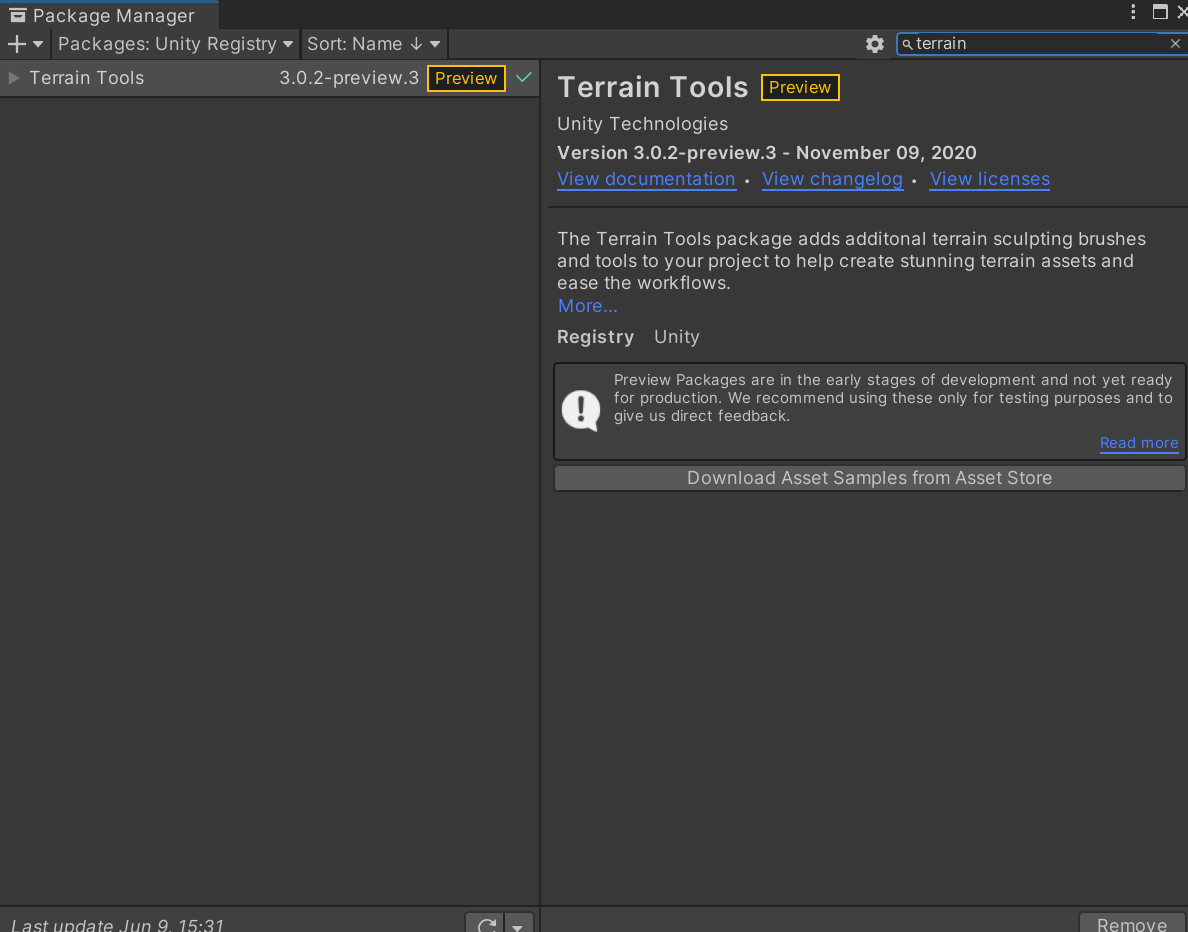Window- Package Manager - terrain Tools 를 다운받고, Import 해둡시다. 또한 이게 없는 분들은