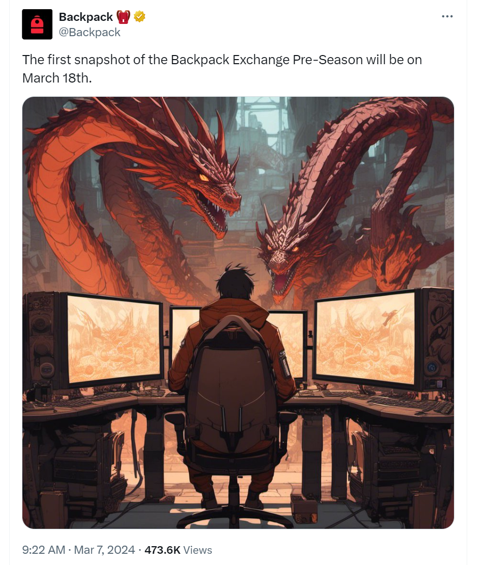 백팩 거래소는 트위터에 3월 18일에 스냅샷을 찍겠다는 공지를 올렸습니다.