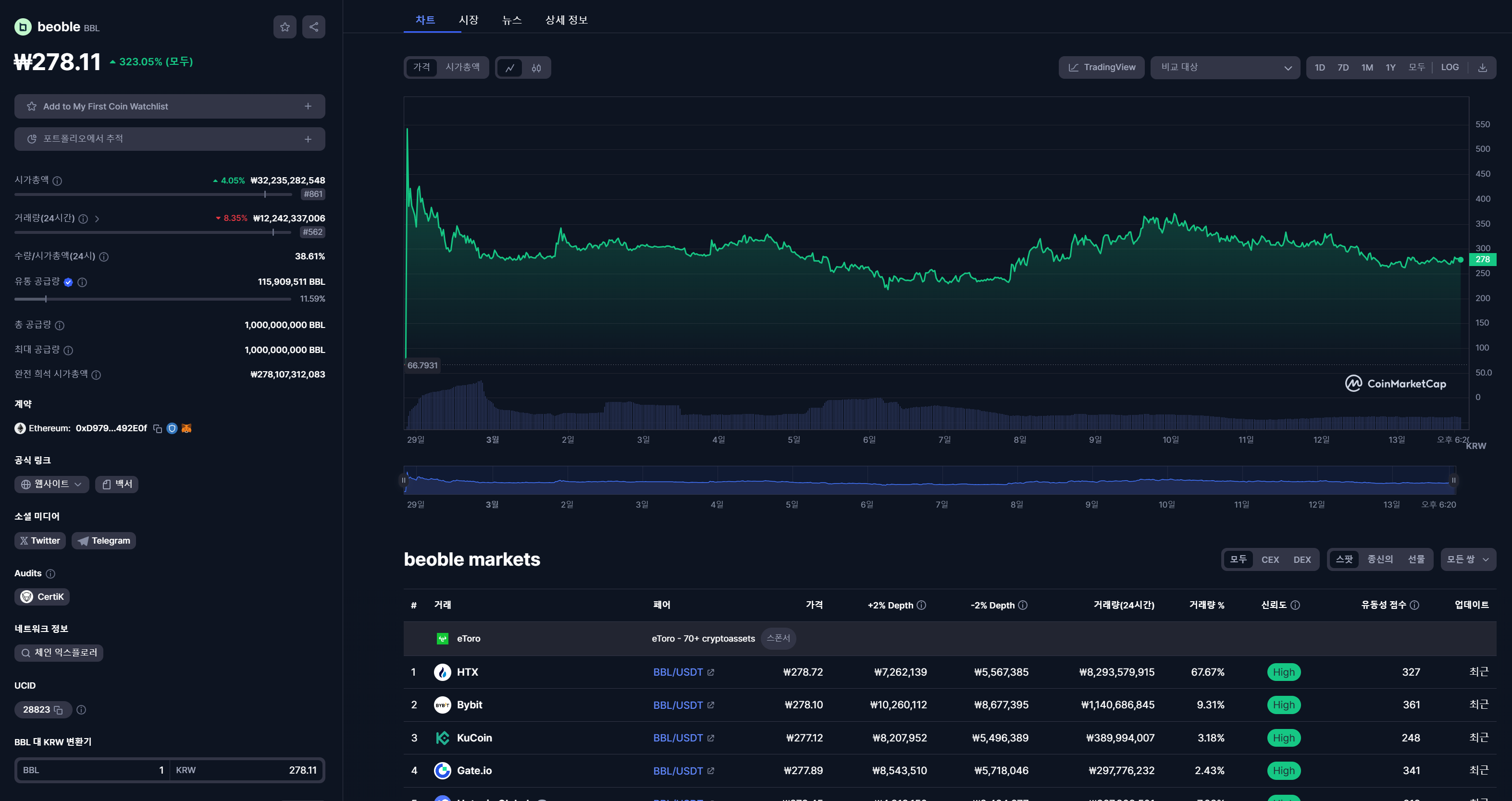 Bybit, HTX, KuCoin, Gate.io등등 거래소에 현재 상장되어 있는 비블(bbl)입니다.