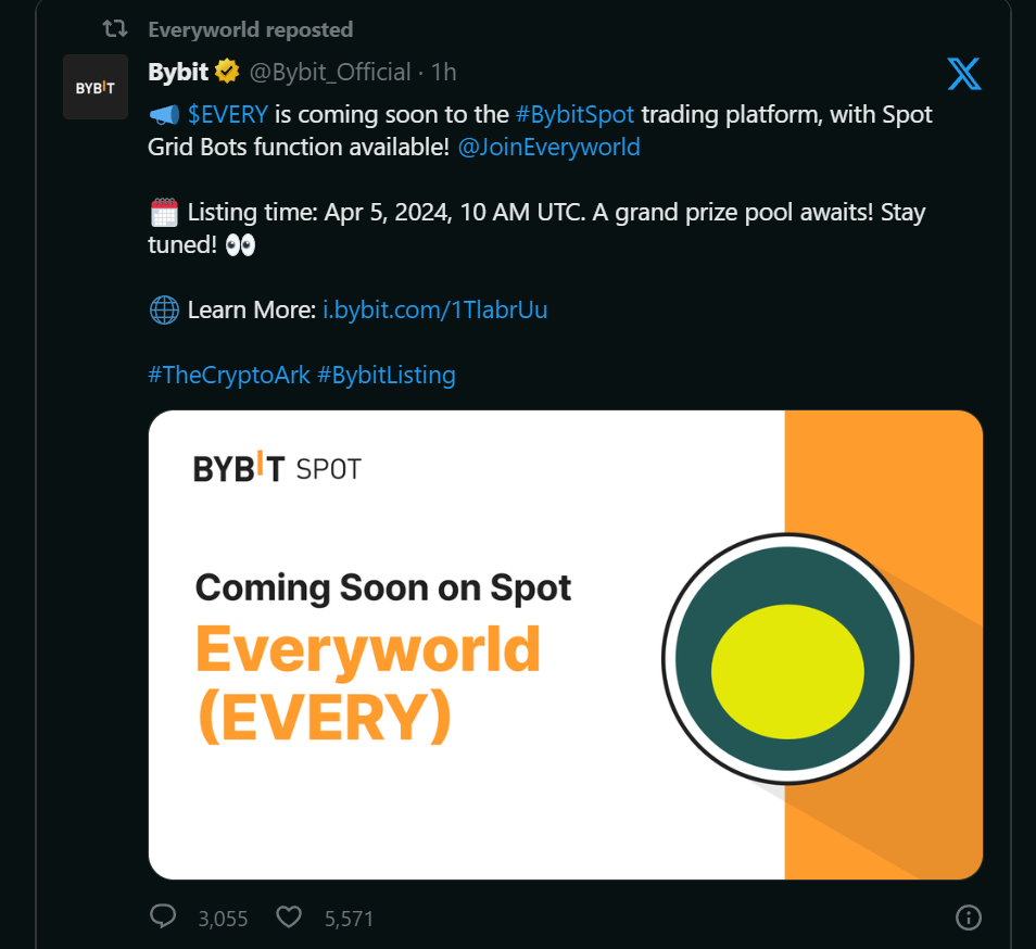 💰 Crypto's (가상화폐, 코인)/Airdrop (에어드랍) Everyworld(Every) 에브리월드 Bybit 상장 - 2024.03.26 - [💰 Crypto's (가상화폐, 코인)/Airdrop (에어드랍)] - 에브리월드(everyworld) 코인베이스 묻음 딸깍 몇 번으로 포인트 모으고 에어드랍 준비 에브리월드(everyworld) 코인베이스 묻음 딸깍 몇 번으로 포인트 모으고 에어드랍 준비 코인 에어드랍(Airdrop) 이란? 특정한 자격을 갖춘 유저에게 무료로 NFT나 신규 코인을 나누어주는 것 자격이란 코인이 출시되기전 커뮤니티 활동을 한 경우, 특정 코인을 가지고 있는 경우, 관련된 meta-jun.tistory.com 이전 글에 올린 에브리월드 4월 5일 오후 7시에 바이빗 상장한다고합니다. Base 체인 밈코!! 언제!? 에어드랍 WenWen 공유하기 게시글 관리 천리길도 한걸음씩 저작자표시 (새창열림) '💰 Crypto's (가상화폐, 코인) > Airdrop (에어드랍)' 카테고리의 다른 글 에브리월드(everyworld) 코인베이스 묻음 딸깍 몇 번으로 포인트 모으고 에어드랍 준비 (0) 2024.03.26 타비(Tabi) 바이낸스 묻은 프로젝트 에어드랍 준비 (0) 2024.03.24 밈코인 펌프(Pump!) 에어드랍 준비하기 (0) 2024.03.21 비블(beoble) 에어드랍 준비(~3/31) - 스냅샷 조건?! (0) 2024.03.21 TOADIE(두꺼비 밈코인) 간단하게 출석체크하고 에어드랍준비(~3/31) (1) 2024.03.16 Contents 당신이 좋아할만한 콘텐츠 에브리월드(everyworld) 코인베이스 묻음 딸깍 몇 번으로 포인트 모으고 에어드랍 준비 2024.03.26 타비(Tabi) 바이낸스 묻은 프로젝트 에어드랍 준비 2024.03.24 밈코인 펌프(Pump!) 에어드랍 준비하기 2024.03.21 비블(beoble) 에어드랍 준비(~3/31) - 스냅샷 조건?! 2024.03.21 댓글 0 + 이전 댓글 더보기