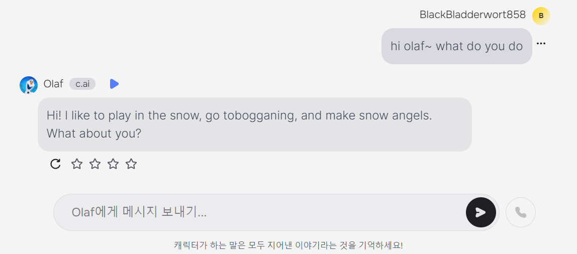 자유롭게 내가 만든 가상의 캐릭터와도 이야기를 나눌 수 있습니다.