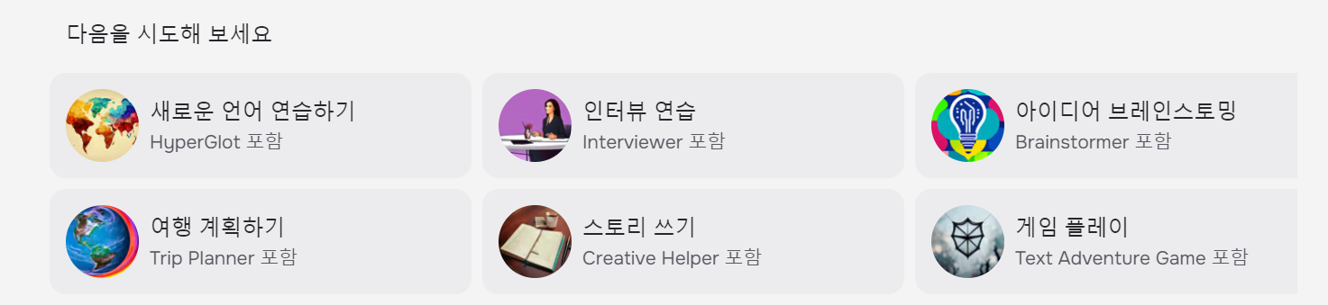 캐릭터 만들기 또는 탐색을 통해서 사람들이 만든 캐릭터와 선택 하여 대화를 나눌 수 있어요