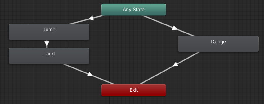 - Has Exit Time(활성화시 해당 모션이 끝날때 까지 어떤 모션도 하지 않는다) : Land, Dodge -> Exit