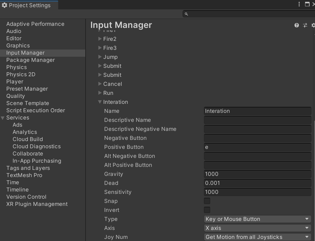 - 아이템이 근처에 있을시 획득 할 단축키를 Interation이름의 "e" key로 지정해주었습니다.