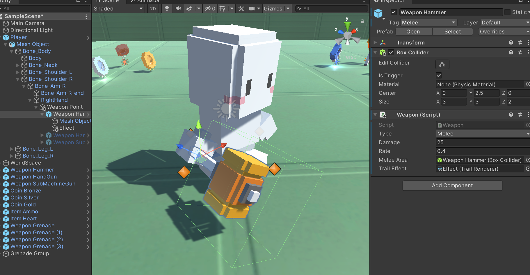 - Box Collider를 추가해 피격 범위를 설정합니다.