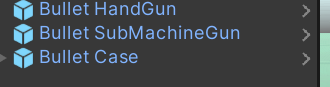 - 이후에 Bullet 스크립트까지 만들어 총알들, 탄피에 넣어줍시다.