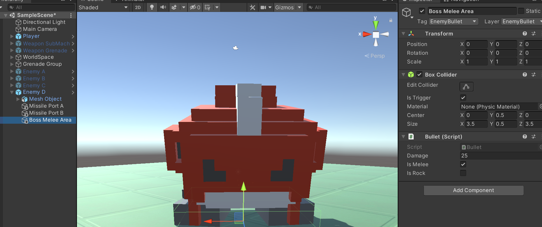 - 각 공격에 대한 오브젝트 Tag, Layer을 EnemyBullet으로 맞춰야합니다