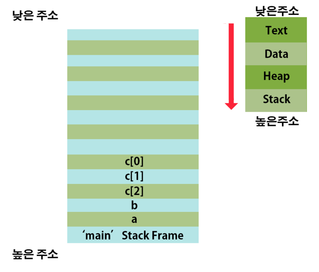 처음에는 배열은 c[0] -> c[2] 순으로 스택에 쌓일 것이라 생각했는데 아니네요